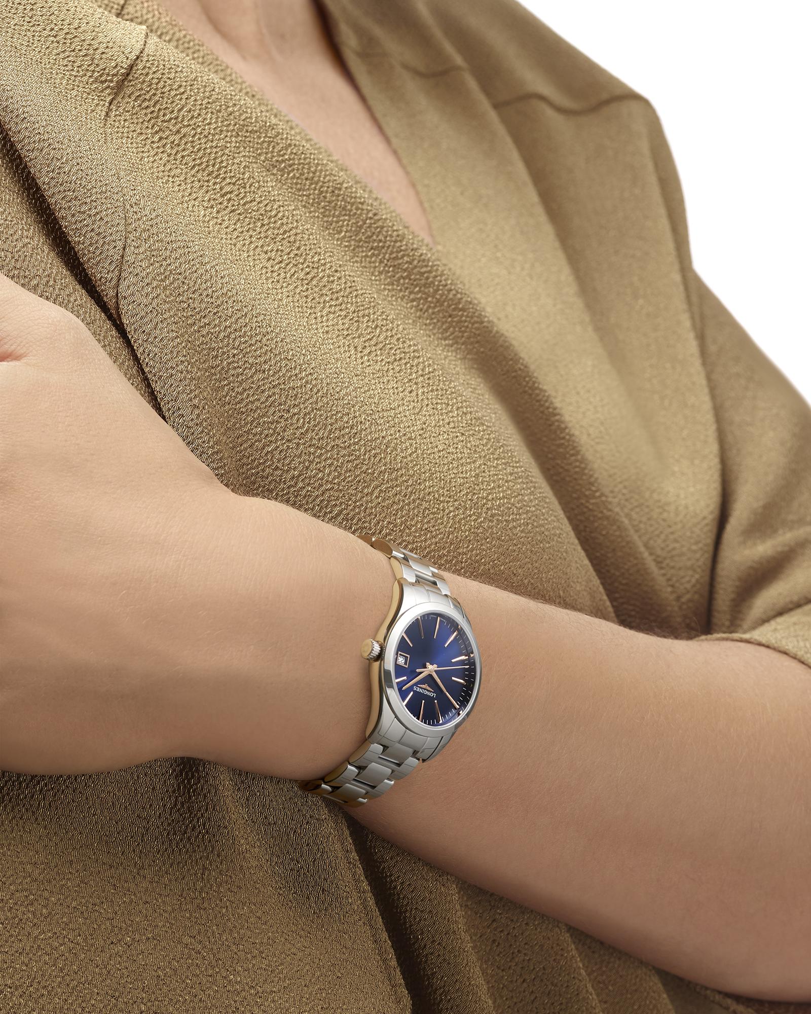 Water-resistant to 5 bar, scratch-resistant sapphire crystal, with several layers of anti-reflective coating on the underside. Stainless steel bracelet, with triple safety folding clasp and push-piece opening mechanism.