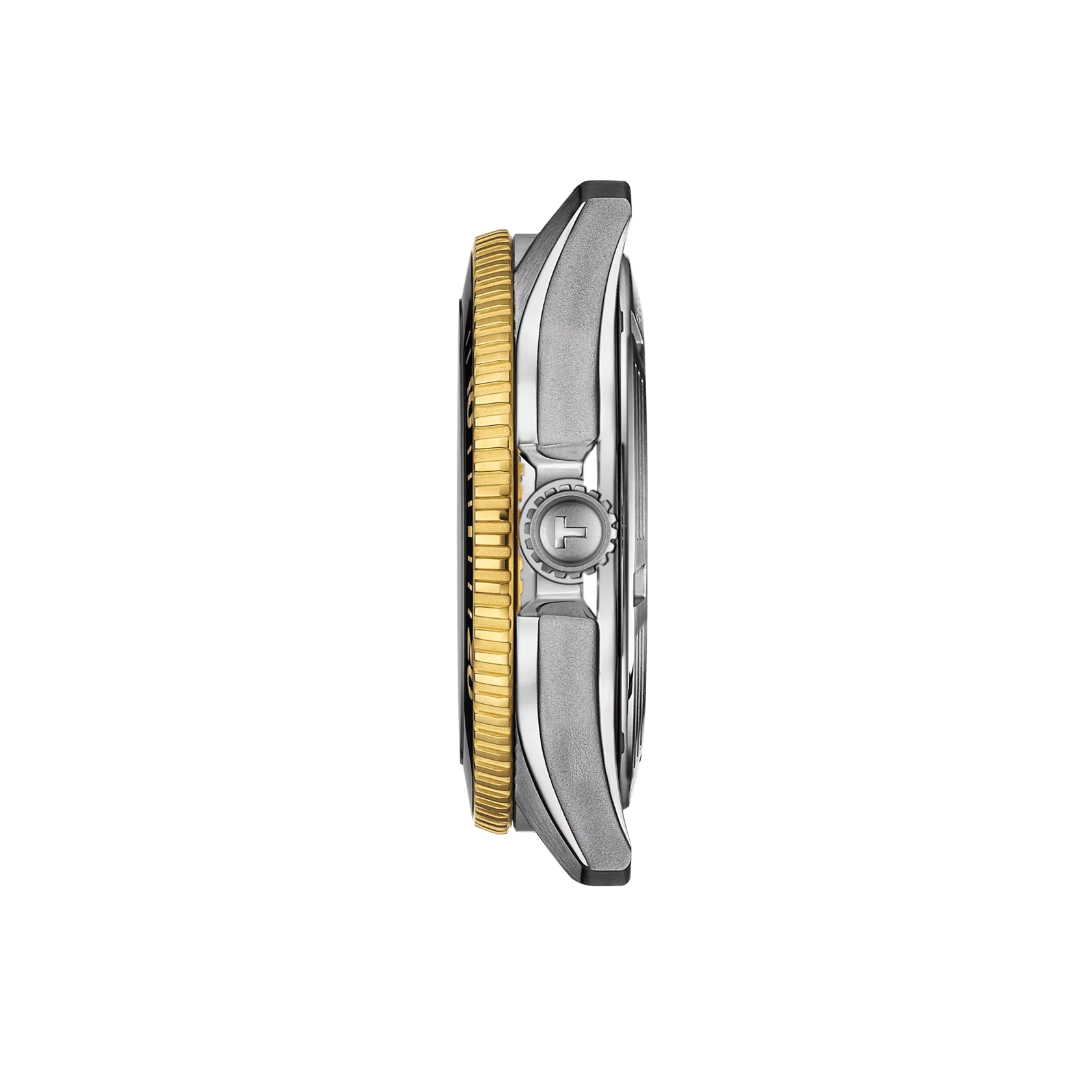 This updated edition of one of Tissot's main collections now introduces a 40mm casing option with the Powermatic 80 at its heart. For this new release, the casing has undergone a subtle transformation, incorporating a notch along its case edges, resulting in a more compact and sophisticated appearance. These timepieces are perfect for those in search of a sporty yet assertive accessory, offering water resistance up to 1000 feet (300 meters) and improved visibility in dim conditions thanks to the Super-LumiNova® coated hands and hour markers. This release features five distinct models, varying in dial colours and finishes from stainless steel to bi-colour combinations, including unique blue to black gradients and exclusive black PVD-coated options. Each variant delivers a unique aesthetic while maintaining the collection's signature sporty yet bold appeal.