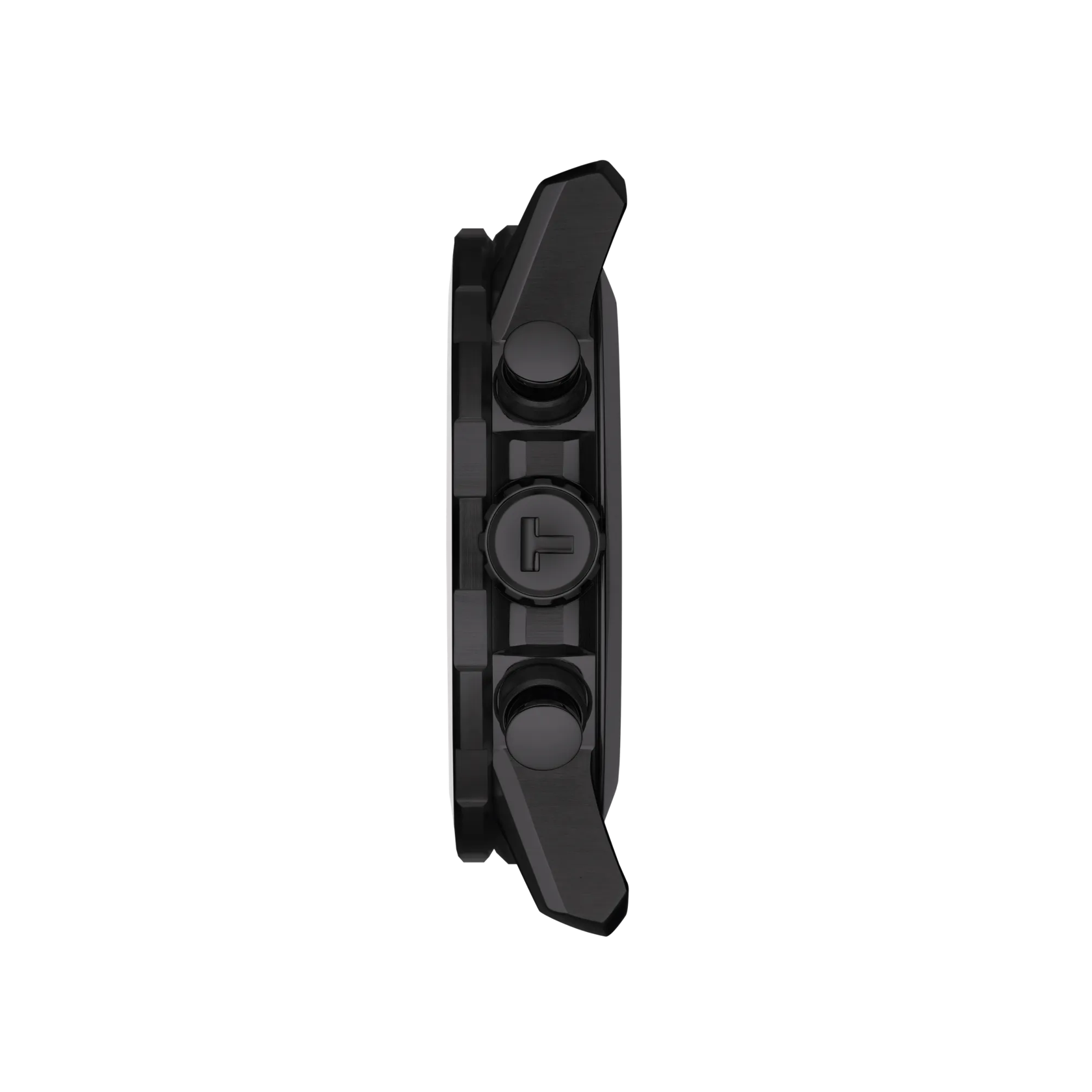 The NBA Supersport Special Edition honours basketball with thoughtful details and a sporty style. The striking 45mm black PVD-coated stainless steel case features a bezel incorporating the 24 seconds rule drawing from the NBA’s shot clock with colour accents hinting at the league. The dial, featuring a basketball dot pattern and a gradient fade from dark grey to black at the edges, creates an illusion of depth that mirrors the shape of the ball. Numeral indexes, like those on player's jersey, add a meaningful touch, while the NBA logo on the second hand serves as a further tribute to the sport. The black bi-material bracelet complements the dial's texture, making it perfect for everyday wear and physical activities. Meanwhile, the case back holds the true hidden gem: intricate engravings of the NBA logo, surrounded by the cities and states the teams take their names from, both the Western and Eastern Conferences. This watch features a quartz chronograph movement, providing accurate timekeeping with minimal maintenance.